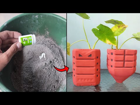 Cute Cement Flower Pots - Easy DIY Flower Pots from Plastic Bottles